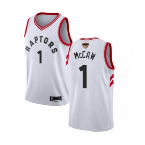>Men's Toronto Raptors #1 Patrick McCaw Swingman White 2019 Basketball Finals Bound Jersey - Association Edition