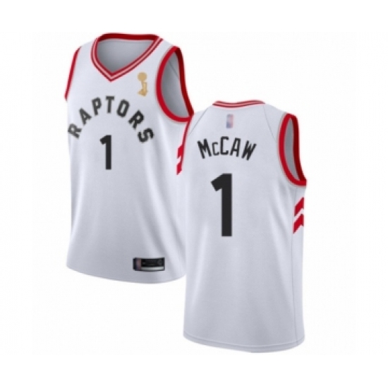 Men's Toronto Raptors #1 Patrick McCaw Swingman White 2019 Basketball Finals Champions Jersey - Association Edition