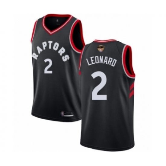>Men's Toronto Raptors #2 Kawhi Leonard Swingman Black 2019 Basketball Finals Bound Jersey Statement Edition