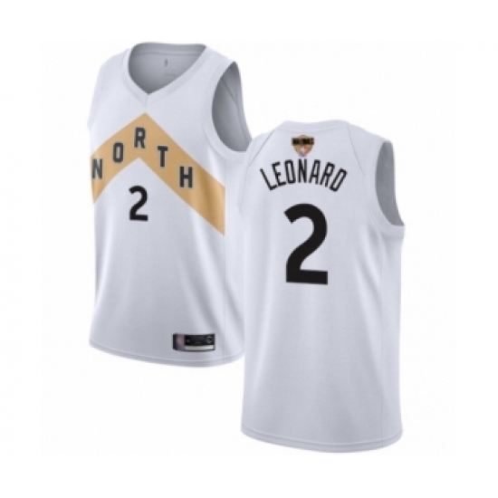 >Men's Toronto Raptors #2 Kawhi Leonard Swingman White 2019 Basketball Finals Bound Jersey - City Edition
