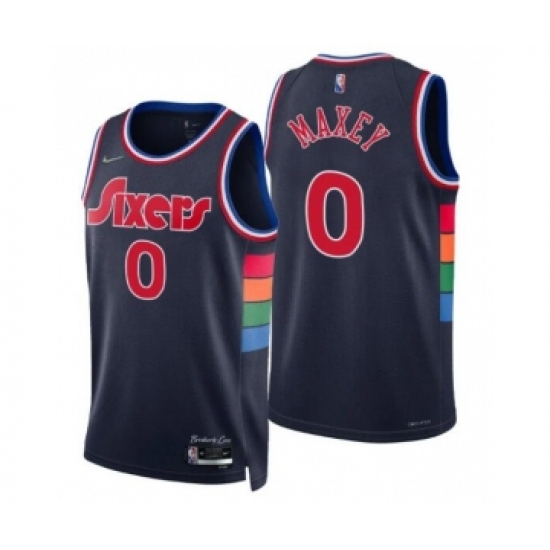 Men's Tyrese Maxey #0 Philadelphia 76ers 2021-22 City Navy Jersey