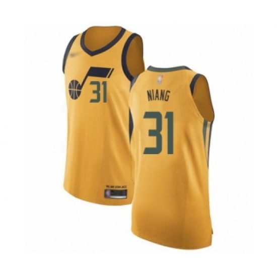 >Men's Utah Jazz #31 Georges Niang Authentic Gold Basketball Jersey Statement Edition
