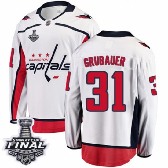 Men's Washington Capitals #31 Philipp Grubauer Fanatics Branded White Away Breakaway 2018 Stanley Cup Final NHL Jersey