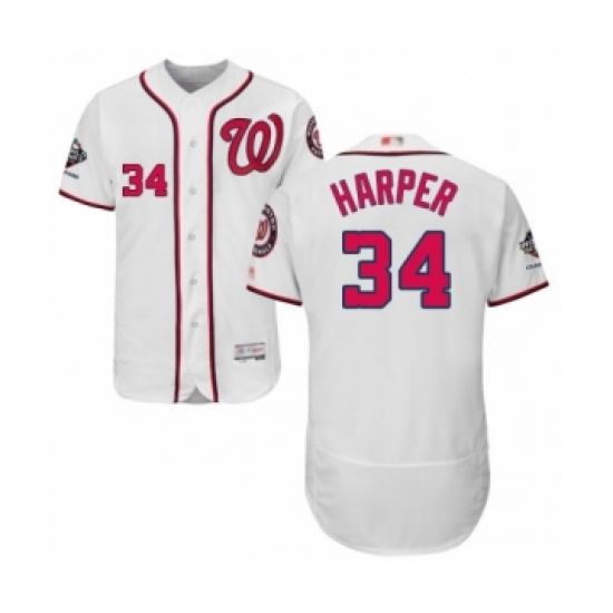Men's Washington Nationals #34 Bryce Harper White Home Flex Base Authentic Collection 2019 World Series Champions Baseball Jersey