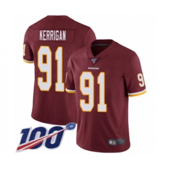 Men's Washington Redskins #91 Ryan Kerrigan Burgundy Red Team Color Vapor Untouchable Limited Player 100th Season Football Jersey