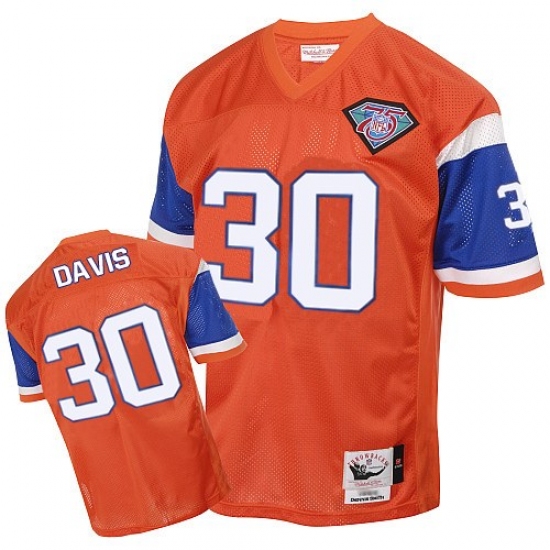 Mitchell And Ness Denver Broncos #30 Terrell Davis Orange Authentic Throwback NFL Jersey