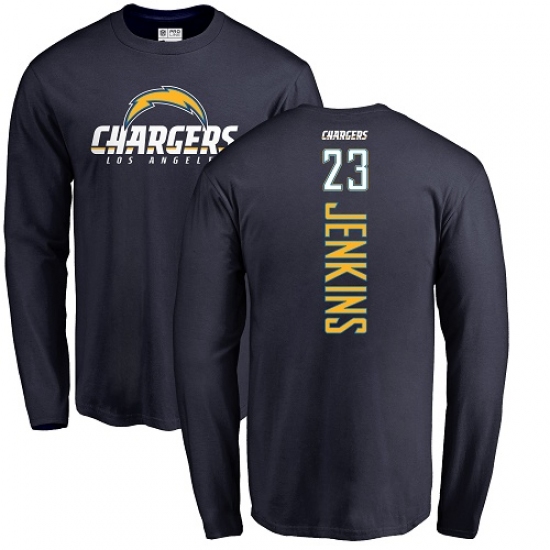 NFL Nike Los Angeles Chargers #23 Rayshawn Jenkins Navy Blue Backer Long Sleeve T-Sh