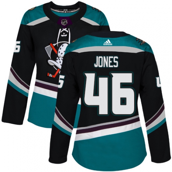 Women's Adidas Anaheim Ducks #46 Max Jones Authentic Black Teal Third NHL Jersey