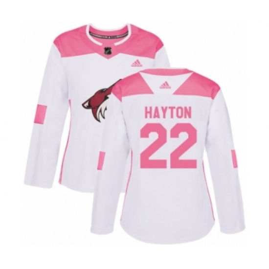 Women's Adidas Arizona Coyotes #22 Barrett Hayton Authentic White Pink Fashion NHL Jersey