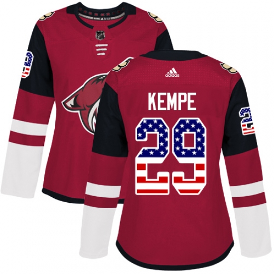Home>NHL>Arizona Coyotes>Mario Kempe>Women's Adidas Arizona Coyotes #29 Mario Kempe Authentic Red USA Flag Fashion NHL Jersey