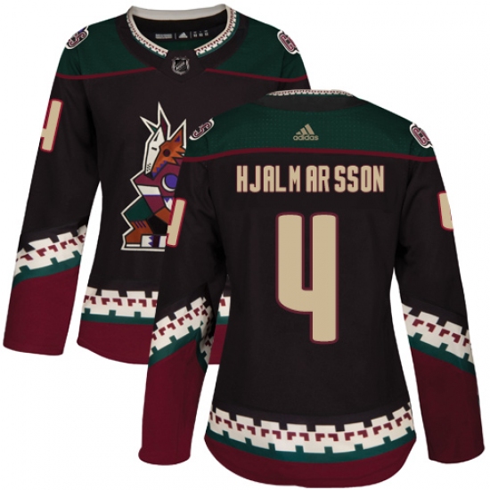 >Women's Adidas Arizona Coyotes #4 Niklas Hjalmarsson Premier Black Alternate NHL Jersey