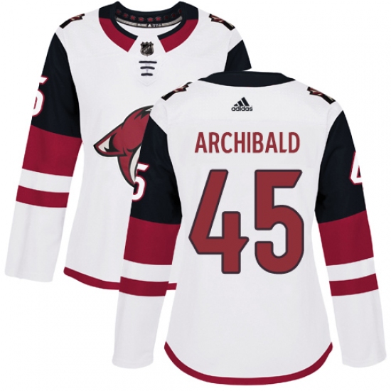 >Women's Adidas Arizona Coyotes #45 Josh Archibald Authentic White Away NHL Jersey