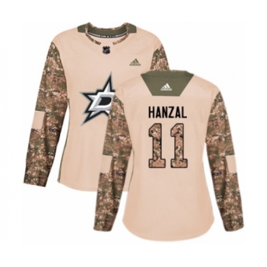 >Women's Adidas Dallas Stars #11 Martin Hanzal Authentic Camo Veterans Day Practice NHL Jersey