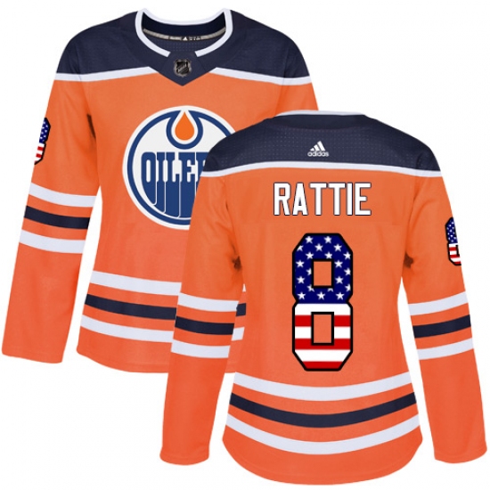 Home>NHL>Edmonton Oilers>Ty Rattie>Women's Adidas Edmonton Oilers #8 Ty Rattie Authentic Orange USA Flag Fashion NHL Jersey