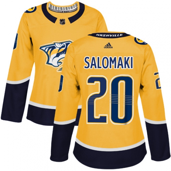 Home>NHL>Nashville Predators>Miikka Salomaki>Women's Adidas Nashville Predators #20 Miikka Salomaki Authentic Gold Home NHL Jersey