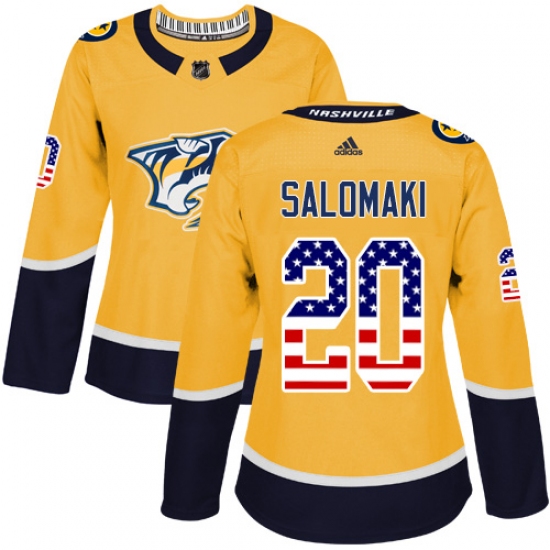 Home>NHL>Nashville Predators>Miikka Salomaki>Women's Adidas Nashville Predators #20 Miikka Salomaki Authentic Gold USA Flag Fashion NHL Jersey