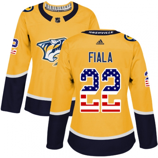Home>NHL>Nashville Predators>Kevin Fiala>Women's Adidas Nashville Predators #22 Kevin Fiala Authentic Gold USA Flag Fashion NHL Jersey