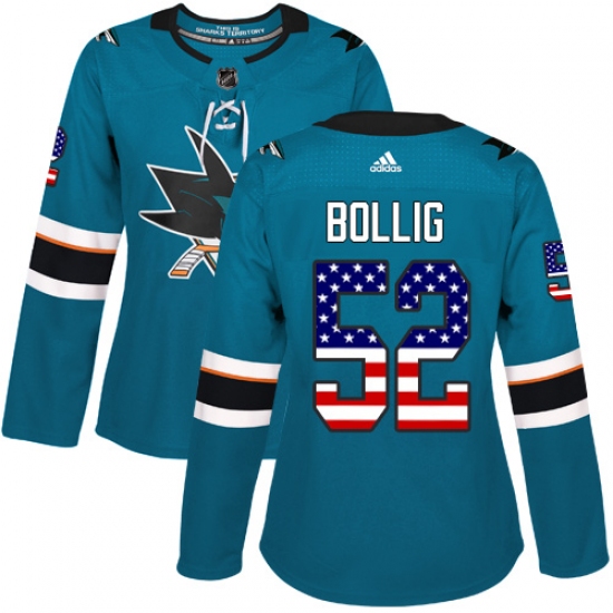 Home>NHL>San Jose Sharks>Brandon Bollig>Women's Adidas San Jose Sharks #52 Brandon Bollig Authentic Teal Green USA Flag Fashion NHL Jersey