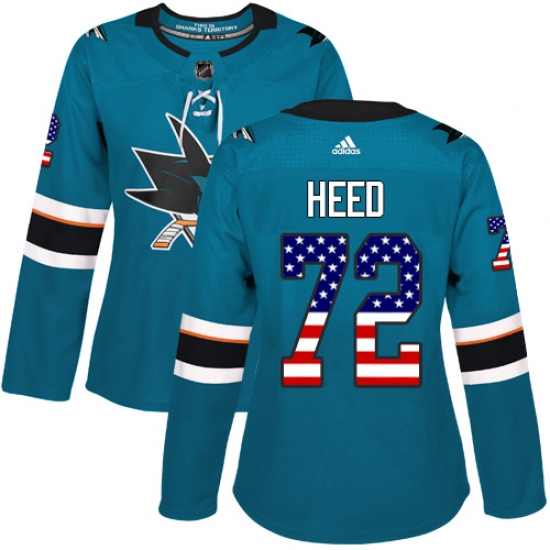 Home>NHL>San Jose Sharks>Tim Heed>Women's Adidas San Jose Sharks #72 Tim Heed Authentic Teal Green USA Flag Fashion NHL Jersey