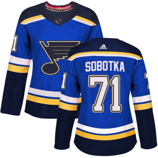 Home>NHL>St. Louis Blues>Vladimir Sobotka>Women's Adidas St. Louis Blues #71 Vladimir Sobotka Premier Royal Blue Home NHL Jersey
