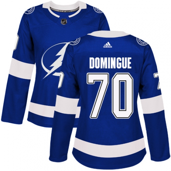 Women's Adidas Tampa Bay Lightning #70 Louis Domingue Authentic Royal Blue Home NHL Jersey