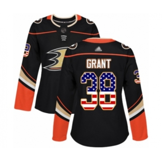 Women's Anaheim Ducks #38 Derek Grant Authentic Black USA Flag Fashion Hockey Jersey