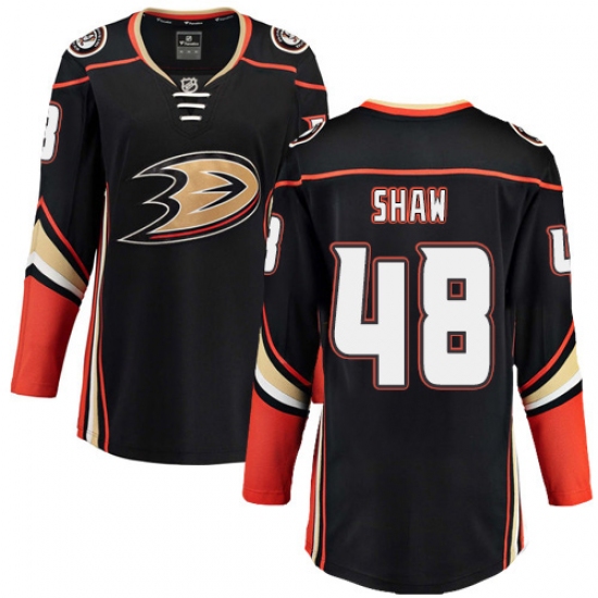 Women's Anaheim Ducks #48 Logan Shaw Fanatics Branded Black Home Breakaway NHL Jersey