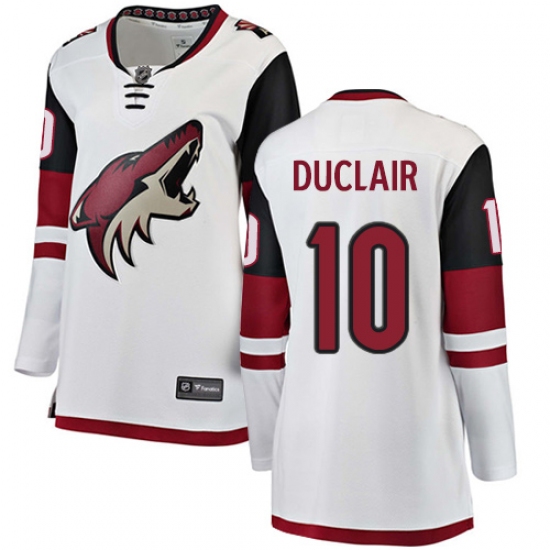 Home>NHL>Arizona Coyotes>Anthony Duclair>Women's Arizona Coyotes #10 Anthony Duclair Authentic White Away Fanatics Branded Breakaway NHL Jersey