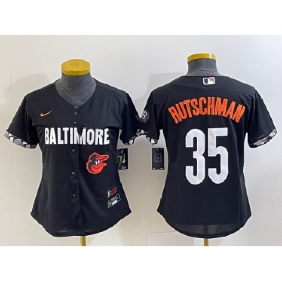 Women's Baltimore Orioles #35 Adley Rutschman Black 2023 City Connect Cool Base Stitched Jersey 1