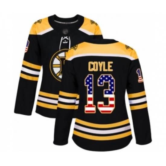 >Women's Boston Bruins #13 Charlie Coyle Authentic Black USA Flag Fashion Hockey Jersey