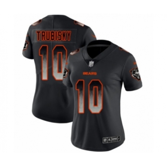 >Women's Chicago Bears #10 Mitchell Trubisky Limited Black Smoke Fashion Football Jersey
