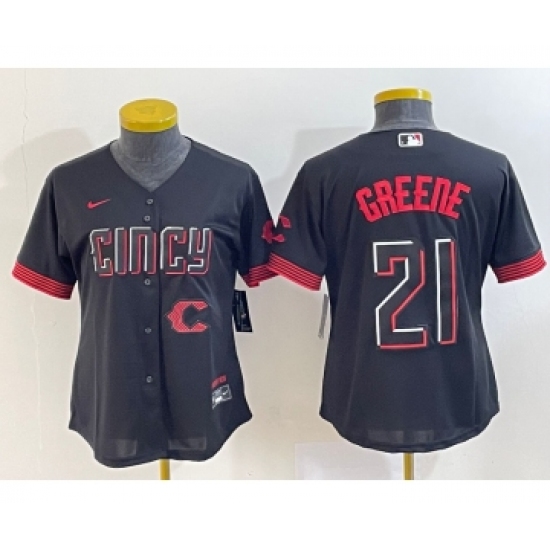 Women's Cincinnati Reds #21 Hunter Greene Black 2023 City Connect Cool Base Stitched Jersey