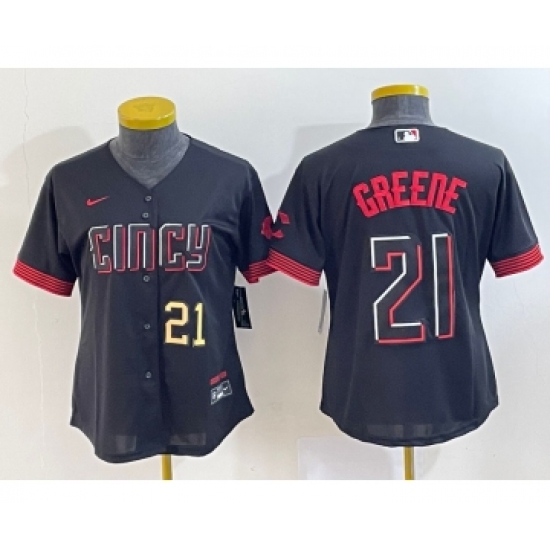 Women's Cincinnati Reds #21 Hunter Greene Number Black 2023 City Connect Cool Base Stitched Jersey