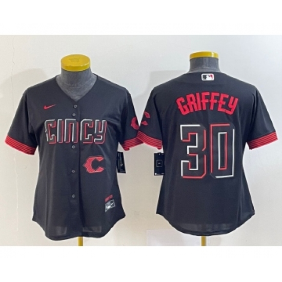 >Women's Cincinnati Reds #30 Ken Griffey Jr Black 2023 City Connect Cool Base Stitched Jersey