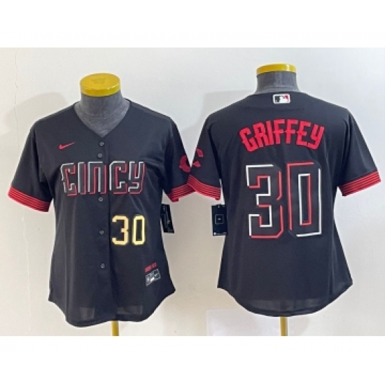 >Women's Cincinnati Reds #30 Ken Griffey Jr Number Black 2023 City Connect Cool Base Stitched Jersey1