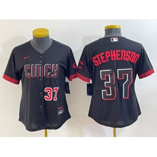 Women's Cincinnati Reds #37 Tyler Stephenson Black 2023 City Connect Cool Base Stitched Jersey