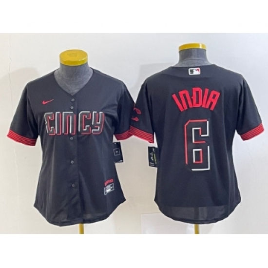 Women's Cincinnati Reds #6 Jonathan India Black 2023 City Connect Cool Base Stitched Jersey 1