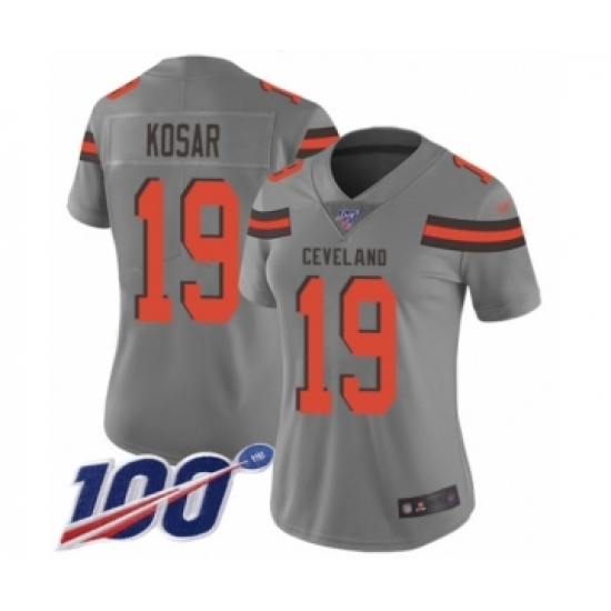 >Women's Cleveland Browns #19 Bernie Kosar Limited Gray Inverted Legend 100th Season Football Jersey