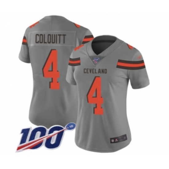 >Women's Cleveland Browns #4 Britton Colquitt Limited Gray Inverted Legend 100th Season Football Jersey