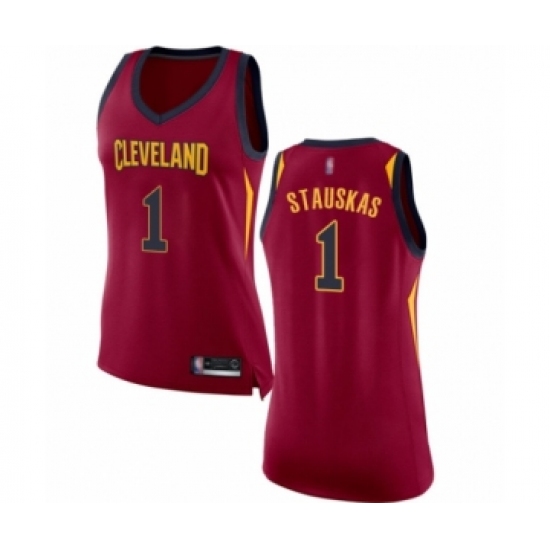 >Women's Cleveland Cavaliers #1 Nik Stauskas Authentic Maroon Basketball Jersey - Icon Edition