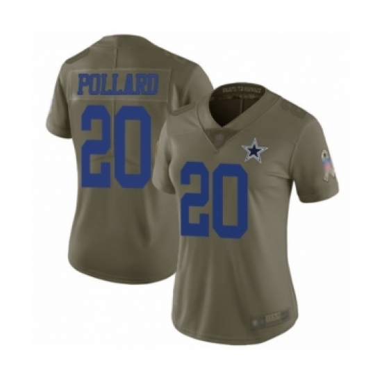 >Women's Dallas Cowboys #20 Tony Pollard Limited Olive 2017 Salute to Service Football Jersey