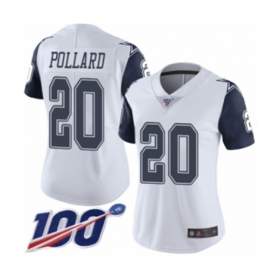 >Women's Dallas Cowboys #20 Tony Pollard Limited White Rush Vapor Untouchable 100th Season Football Jersey