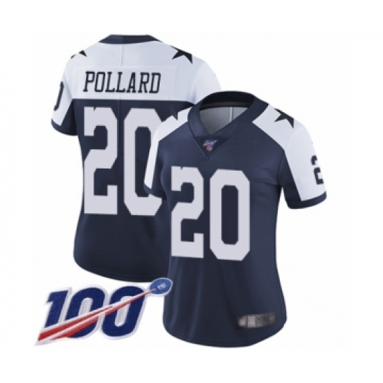 >Women's Dallas Cowboys #20 Tony Pollard Navy Blue Throwback Alternate Vapor Untouchable Limited Player 100th Season Football Jersey