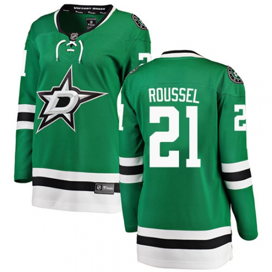 Home>NHL>Dallas Stars>Antoine Roussel>Women's Dallas Stars #21 Antoine Roussel Authentic Green Home Fanatics Branded Breakaway NHL Jersey