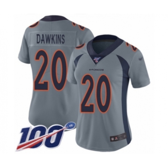 Women's Denver Broncos #20 Brian Dawkins Limited Silver Inverted Legend 100th Season Football Jersey