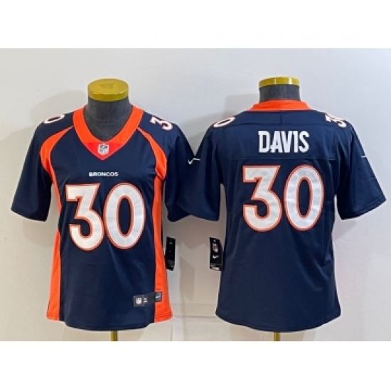 >Women's Denver Broncos #30 Terrell Davis Navy Blue 2022 Vapor Untouchable Stitched NFL Nike Limited Jersey