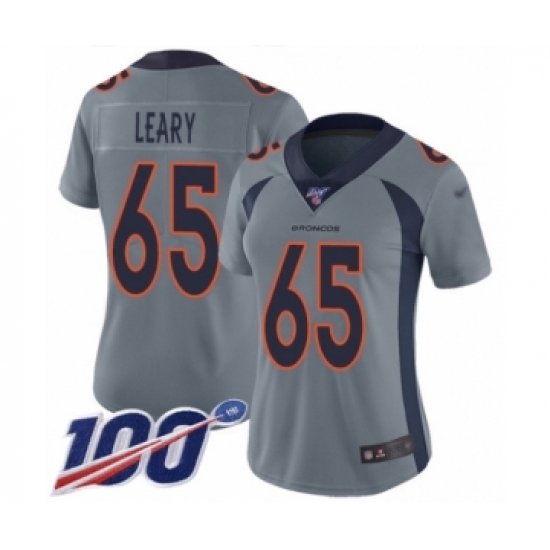 >Women's Denver Broncos #65 Ronald Leary Limited Silver Inverted Legend 100th Season Football Jersey