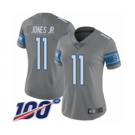 >Women's Detroit Lions #11 Marvin Jones Jr Limited Steel Rush Vapor Untouchable 100th Season Football Jersey