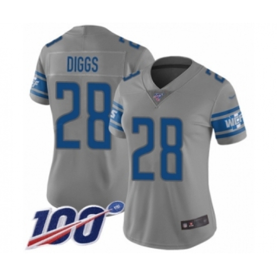>Women's Detroit Lions #28 Quandre Diggs Limited Gray Inverted Legend 100th Season Football Jersey