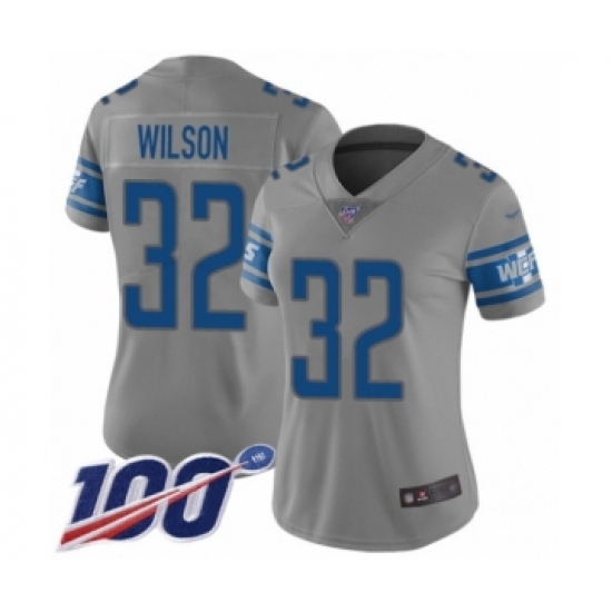 >Women's Detroit Lions #32 Tavon Wilson Limited Gray Inverted Legend 100th Season Football Jersey